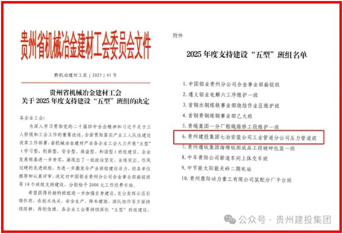 在班组建设方面,七冶安装工程有限责任公司工业管道分公司压力管道班入选2025年度“五型”班组支持建设名单,展现了集团在夯实一线管理、提升班组效能上的显著成效。