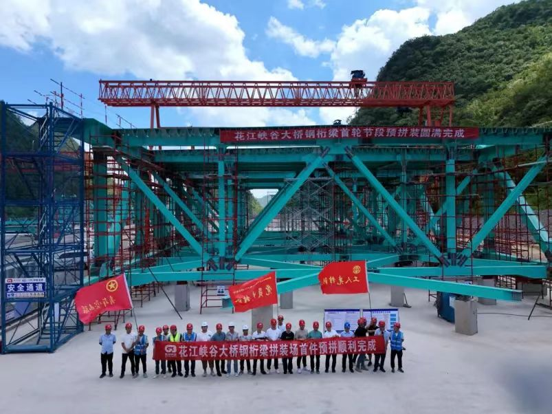 花江峡谷大桥钢桁梁首件预拼装圆满完成