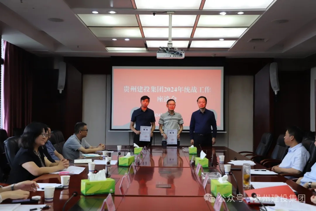 6月13日,贵州建投集团召开2024年统战工作座谈会,传达学习《中国共产党统一战线工作条例》、全国及全省统战部长会议精神等内容,并就生产经营向与会人员广泛征求意见建议。集团党委副书记、工会主席蒙忠出席会议,为集团党外知识分子专家服务团队成员代表颁发聘书并讲话。集团统战对象代表、统战工作领导小组办公室成员参会,集团统战部部长刘璐主持会议。
