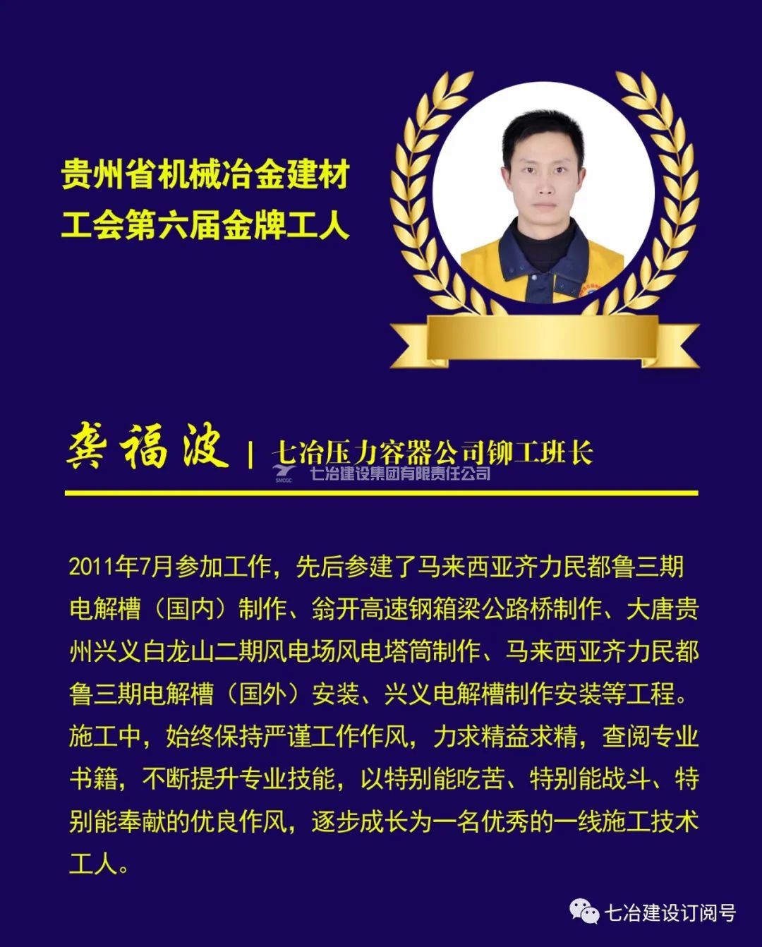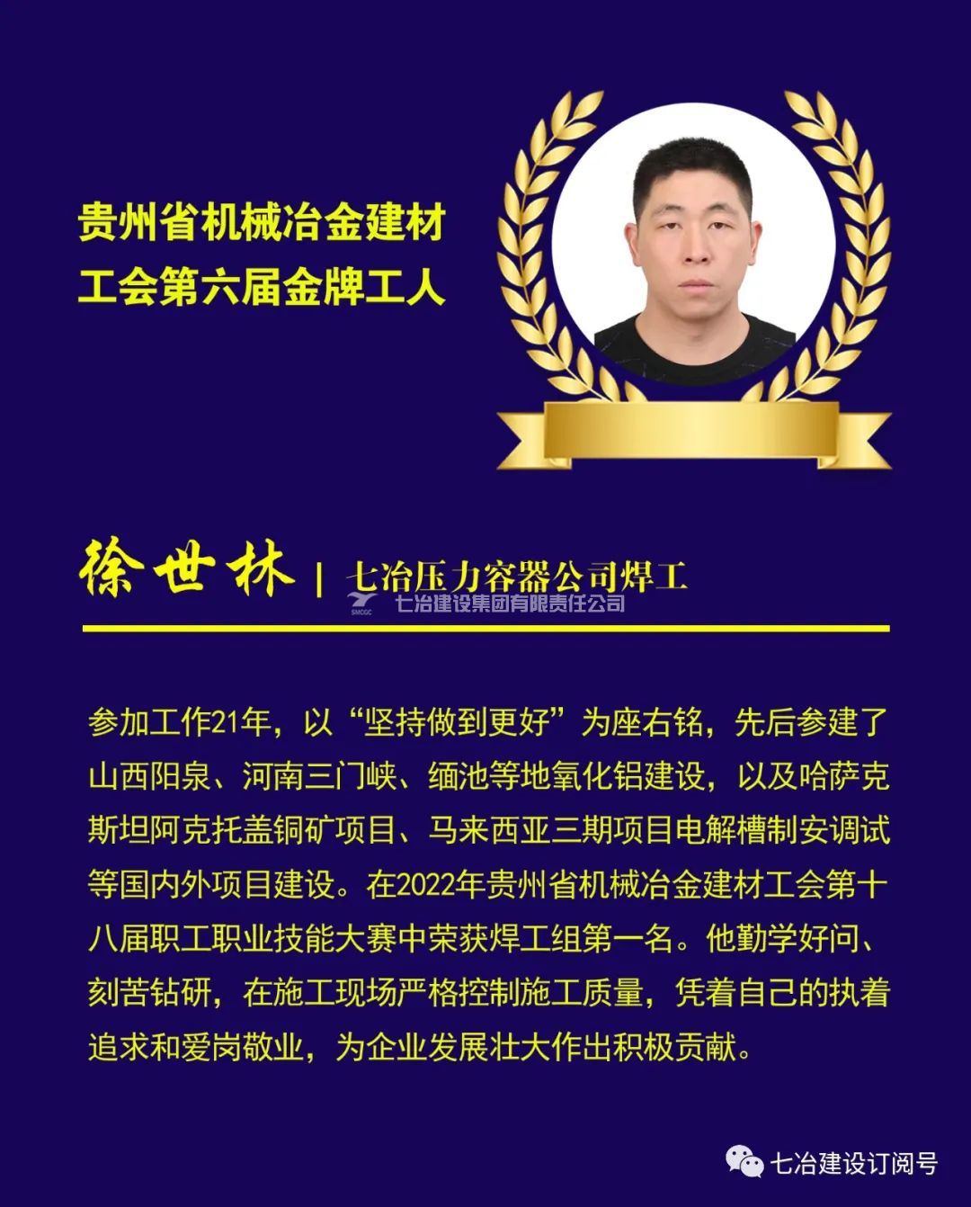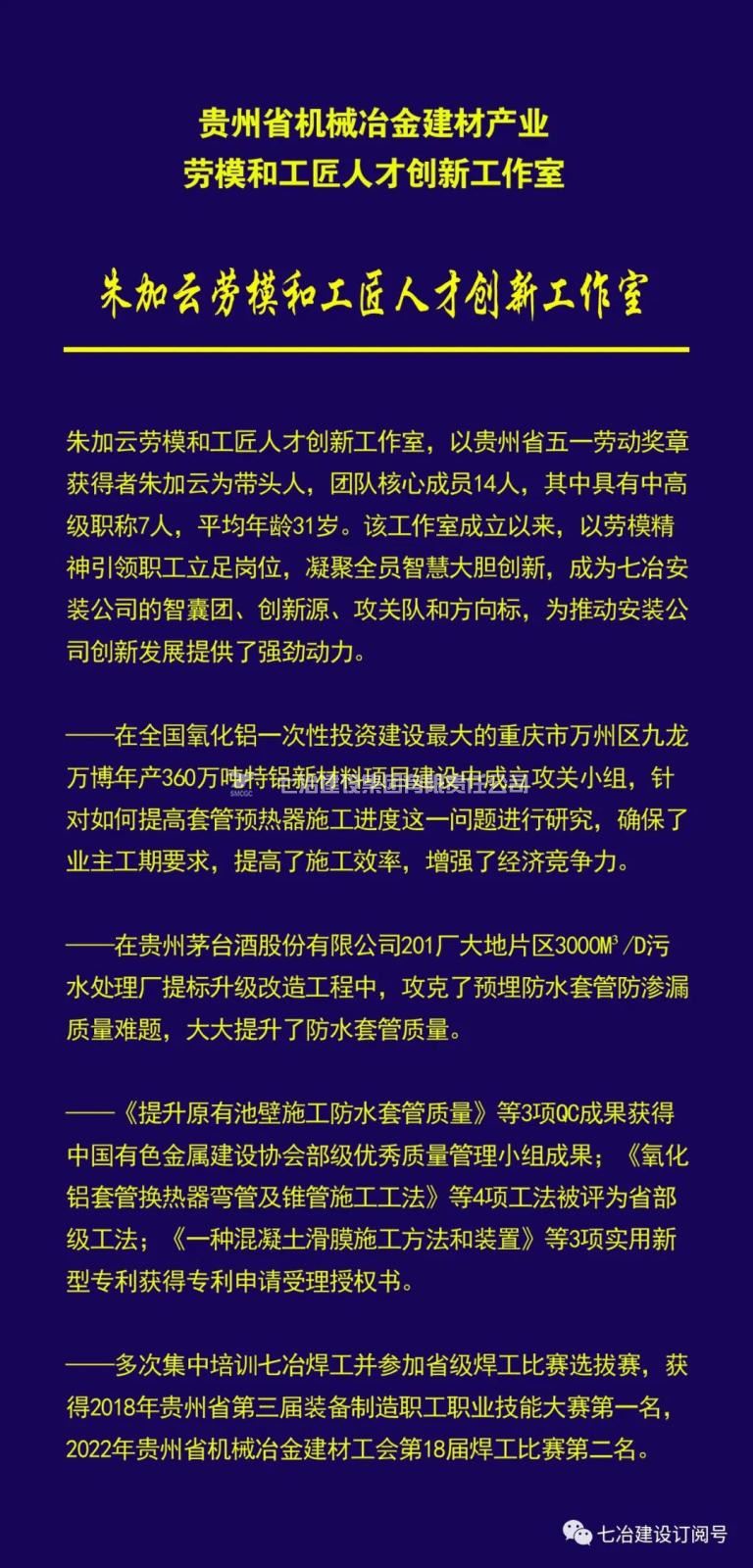 前不久,贵州省机械冶金建材工会下发关于授予第六届“产业工匠”“金牌工人”和首届“岗位能手”荣誉称号的决定,七冶职工李剑、徐世林、龚福波、吴晗榜上有名。同时在关于命名“劳模和工匠人才创新工作室”的决定中,七冶安装公司朱加云劳模和工匠人才创新工作室被命名为“贵州省机械冶金建材产业劳模和工匠人才创新工作室”,并被授予“省机械冶金建材工会工人先锋号”荣誉称号。