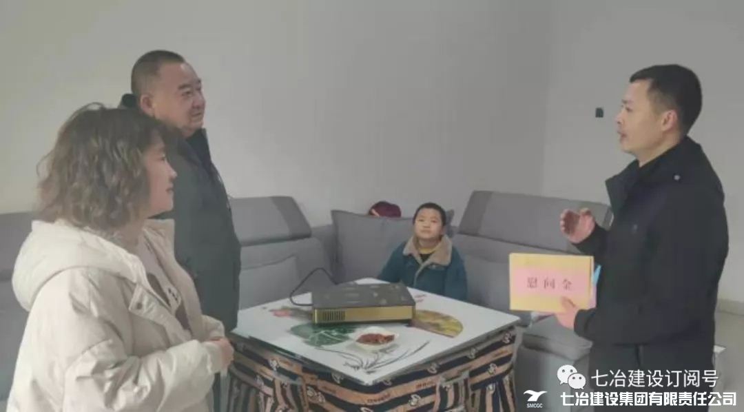 近日,七冶建设集团党委书记、董事长潘海,党委委员、总会计师何瑛带领慰问组分别前往七冶驻村干部吴涛、周杨、何安贵及李德保家中走访慰问,送去新春祝福和组织关怀,并转达集团党委对驻村干部及家属的关心关爱。