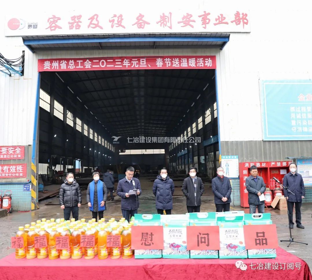 1月5日上午,贵州省总工会2023年元旦春节送温暖活动启动仪式在七冶集团压力容器公司举行。省人大常委会副主任、省总工会主席桑维亮出席活动,并代表省总工会为七冶集团下属的省冶金建设公司送来“送温暖慰问金”20万元,把党和政府的关怀、工会组织的温暖及时送到广大职工群众的心坎上。
