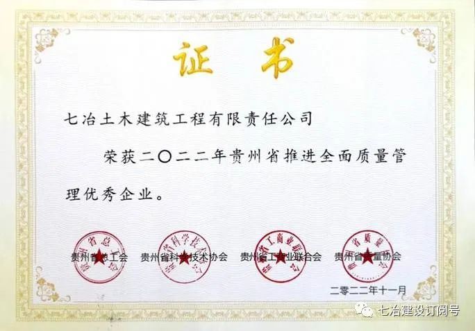 - 喜报!七冶土木公司荣获“2022年贵州省推进全面质量管理优秀企业”荣誉称号
