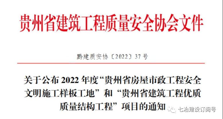 - 喜报!七冶长征数字科技艺术馆项目获评贵州省“房屋市政工程安全文明样板工地”和“建筑工程优质质量结构工程”