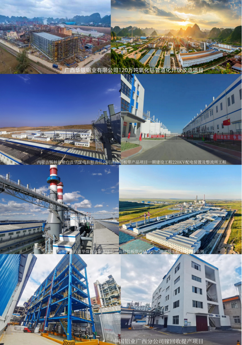 这4项工程分别是——内蒙古锡林郭勒白音华煤电有限责任公司高精铝板带产品项目一期建设工程220KV配电装置及整流所工程、内蒙古锡林郭勒白音华煤电有限责任公司高精铝板带产品项目一期建设工程电解车间系列、中国铝业广西分公司镓回收提产项目和广西华银铝业有限公司120万吨氧化铝管道化升级改造项目。