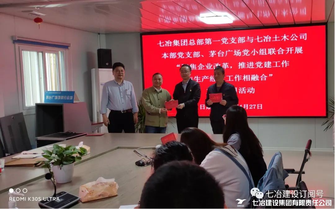 为切实将党的建设工作融入公司治理、融入企业文化、融入生产经营,4月27日上午,七冶集团机关第一党支部与七冶土木公司机关党支部、茅台广场党小组联合开展“聚焦企业改革,推进党建工作与生产经营工作相融合”主题党日活动。七冶建设集团党委副书记、工会主席蒙忠,集团外部董事王皖波参加此次主题党日活动。